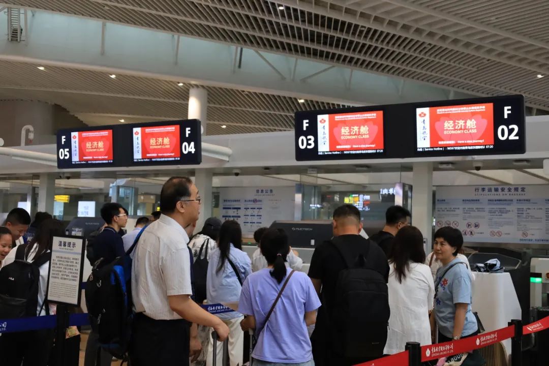 (旅客在青岛航空值机柜台办理值机)