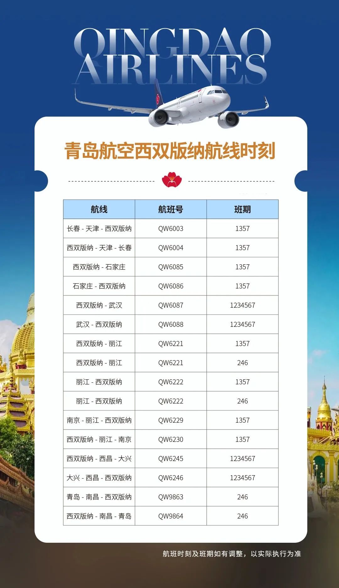 (图为西双版纳航线表)
