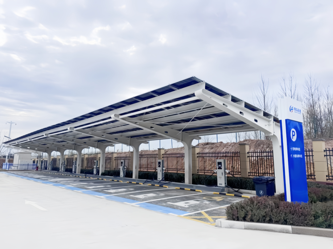 在智慧服务方面,海青服务区全面部署智慧停车系统、环境监测平台和综合服务管理平台,并积极推动绿色能源应用。通过“光储充”一体化系统,集成光伏发电与智能充电设备(含16台智能充电桩,其中2台为液冷超充),实现清洁能源高效利用,彰显绿色低碳发展理念。