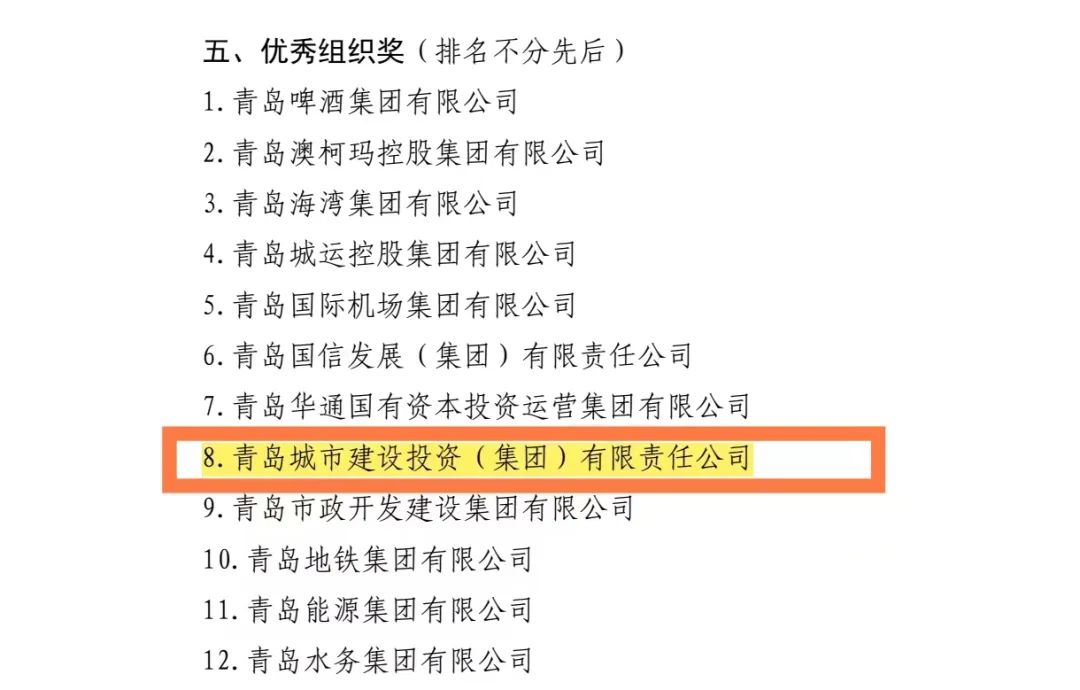 优秀组织奖 青岛城投集团